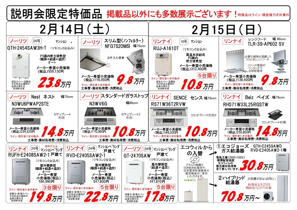 14日ノーリツ、15日リンナイ社員も来ていますので、詳しくご説明させていただけます。